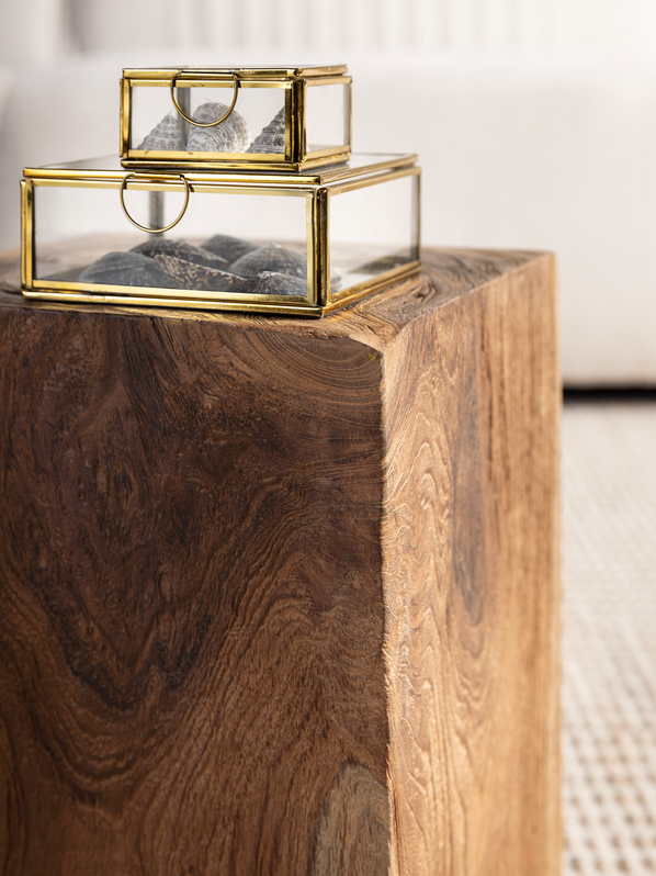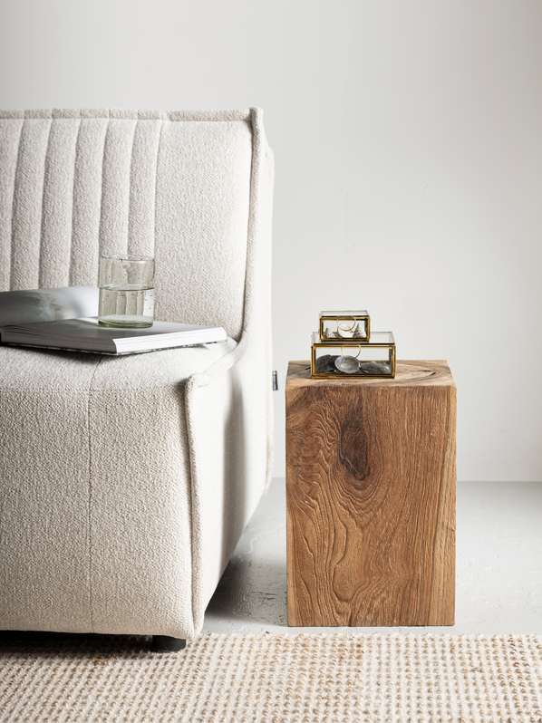 De Bijzettafel Rio van Must Living brengt de natuur rechtstreeks je interieur in. Deze compacte, robuuste tafel is gemaakt van massief teakhout uit één stam, waardoor elke Rio zijn eigen vorm, houttekening en karakter heeft. Geen enkel exemplaar is hetzelfde – en dat maakt ’m juist zo bijzonder.