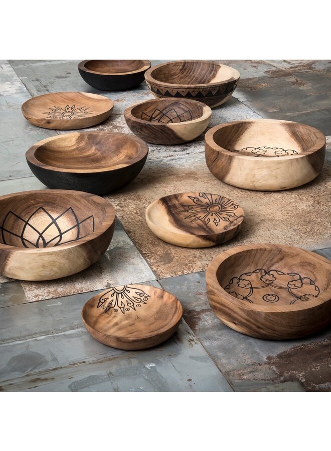 De oriental bowls hebben een unieke look en zijn leuke eye catchers voor in de keuken. De bowls hebben een afmeting van 8xØ25 cm / 10xØ30 cm en zijn gemaakt van teakhout.