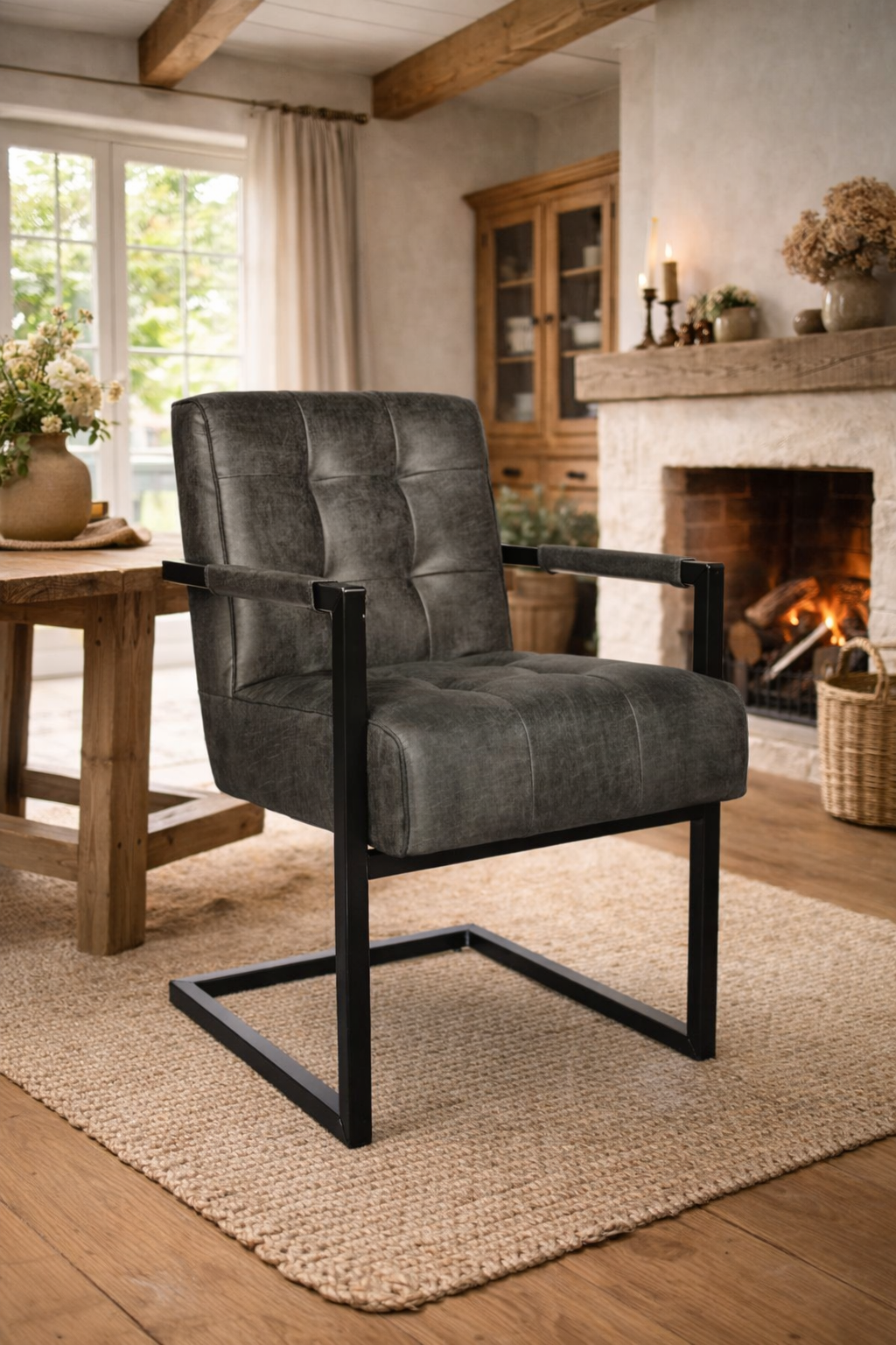 De comfortabele zitting en ondersteunende rugleuning zorgen voor een prettige zit, ideaal voor lange diners of gezellig natafelen. Het stevige metalen onderstel met een kokermaat van 3 × 3 cm geeft de stoel een krachtige en stabiele uitstraling en maakt het design helemaal af.