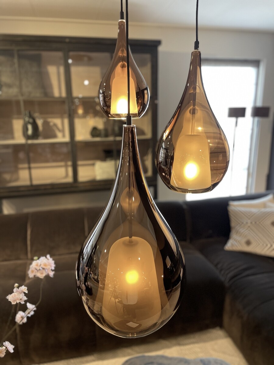 Drie prachtige Bulbs van mondgeblazen Fenicia glas in kleur Bronze: