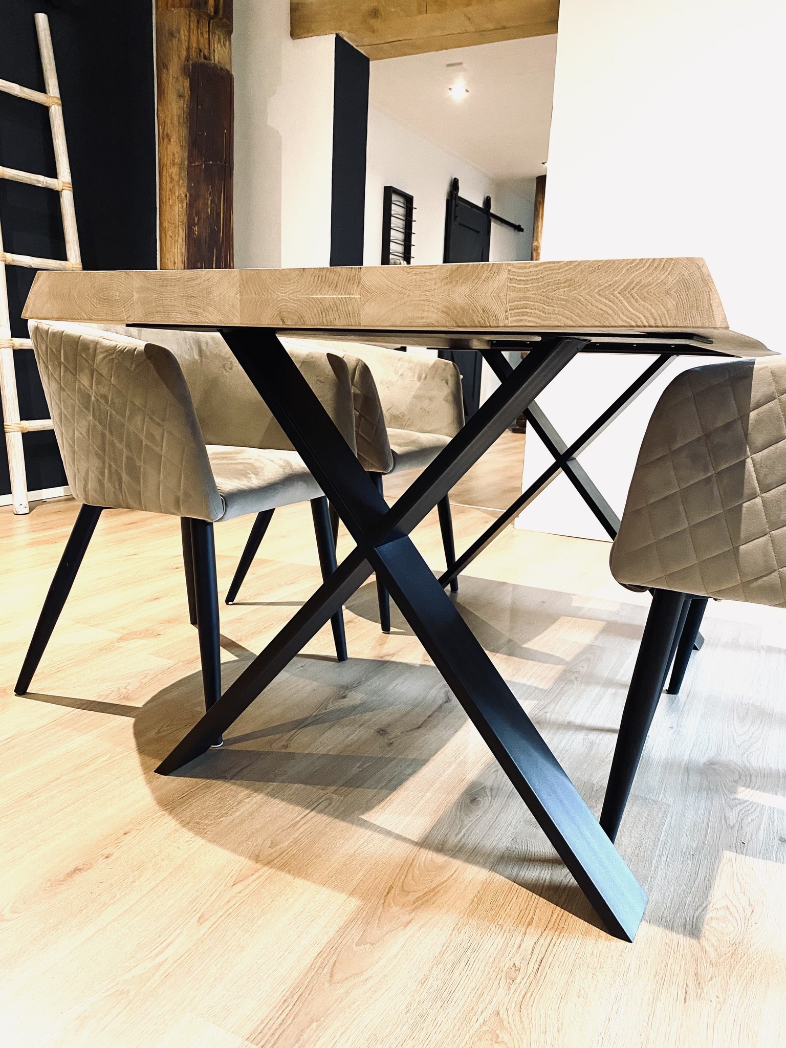 Dit doen wij door altijd op zoek te gaan naar de nieuwste trends en de meubelen die net even anders dan anders zijn. Op de foto zie je dan ook onze industriele tafelpoot Lieve. Een prachtige fine line tafelpoot die zich kenmerkt met een X-vorm. Maar deze X-vorm is samengesteld met fine line metaal. Dit geeft deze metalen tafelpoot een chique en fijne look!