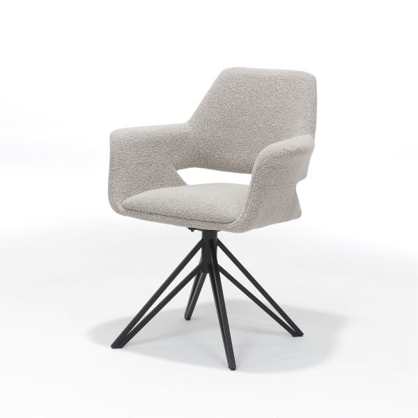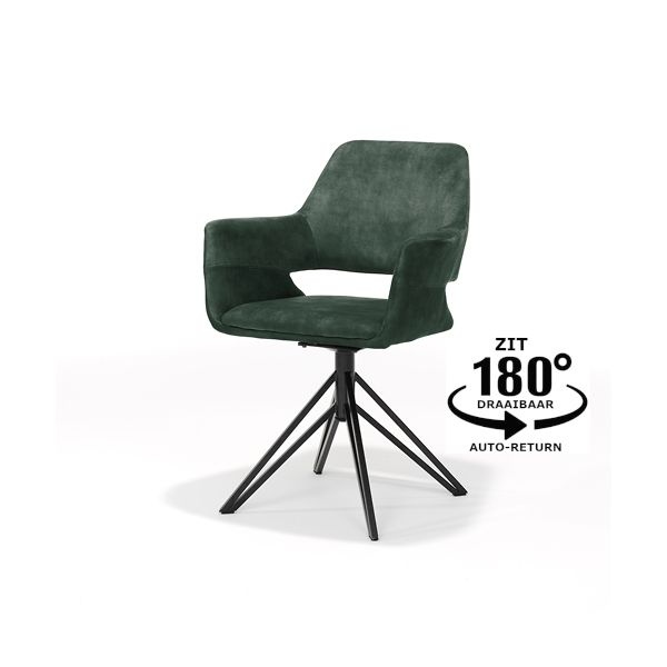 Eetkamerstoel Katie past zich moeiteloos aan verschillende interieurstijlen aan en straalt comfort en moderniteit uit. De stoel is uitgerust met een draaimechanisme en een auto-return functie, waardoor de stoel automatisch terugdraait naar de beginpositie. Dit zorgt niet alleen voor extra gemak, maar ook voor een opgeruimd en strak geheel rondom de eettafel.