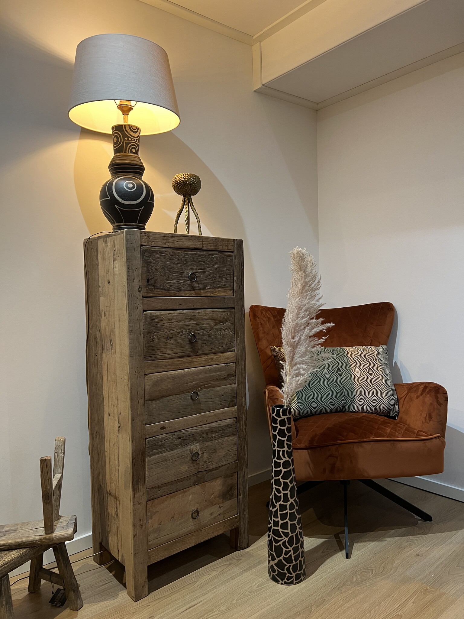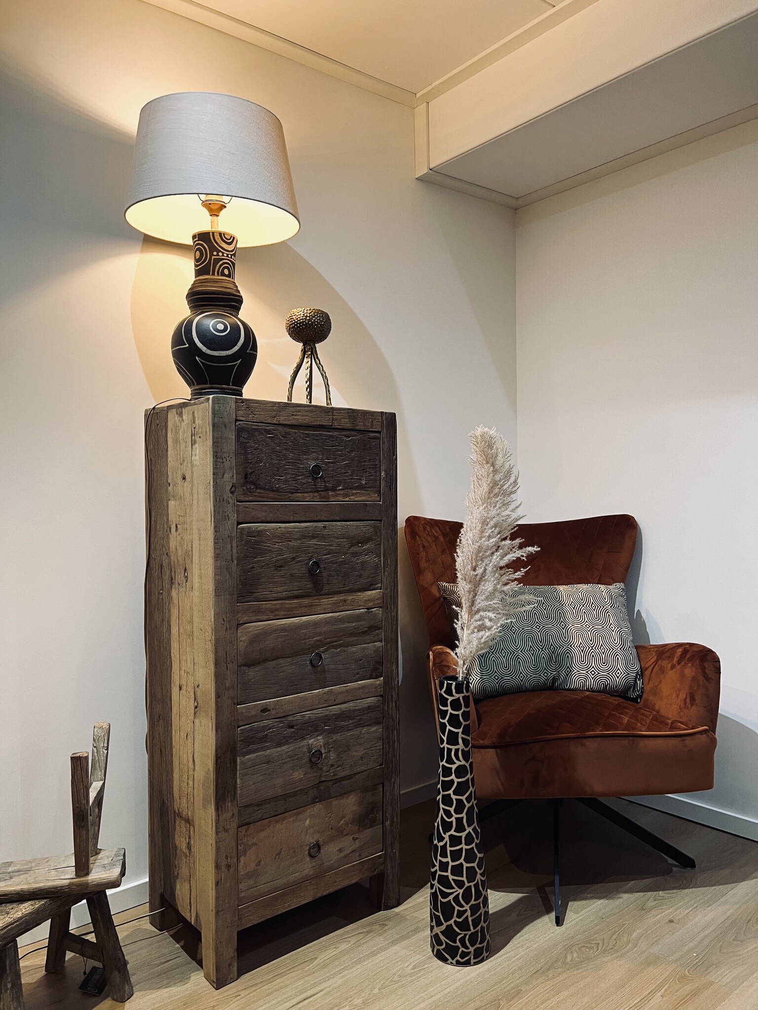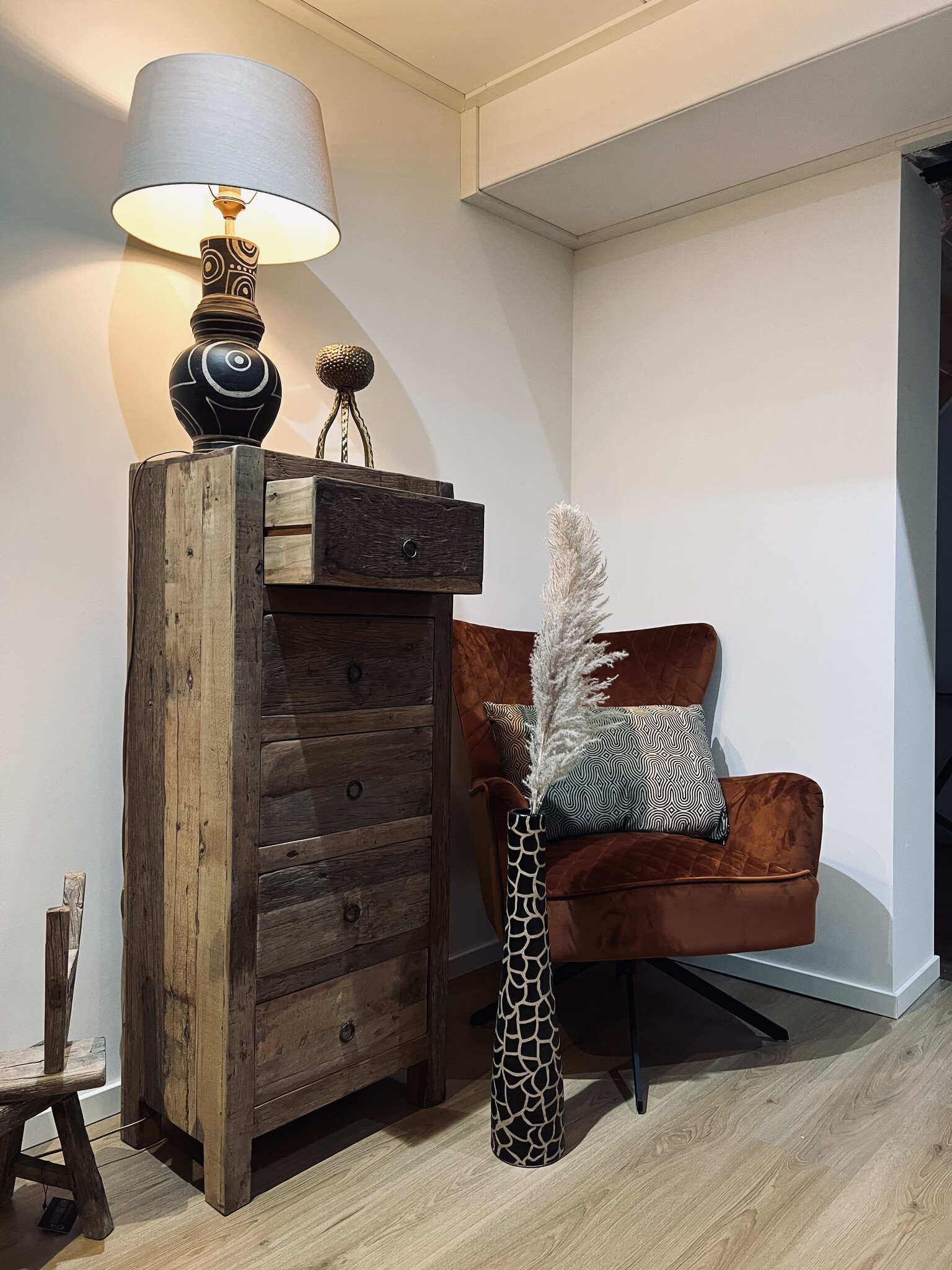 Landelijke ladekast Mac is een robuuste kast met een stoere uitstraling. De kast is voorzien van 5 lades en wordt gemaakt van onbehandeld Bassano Hout. Bassano hout valt op door de natuurlijke nerven en groeven.