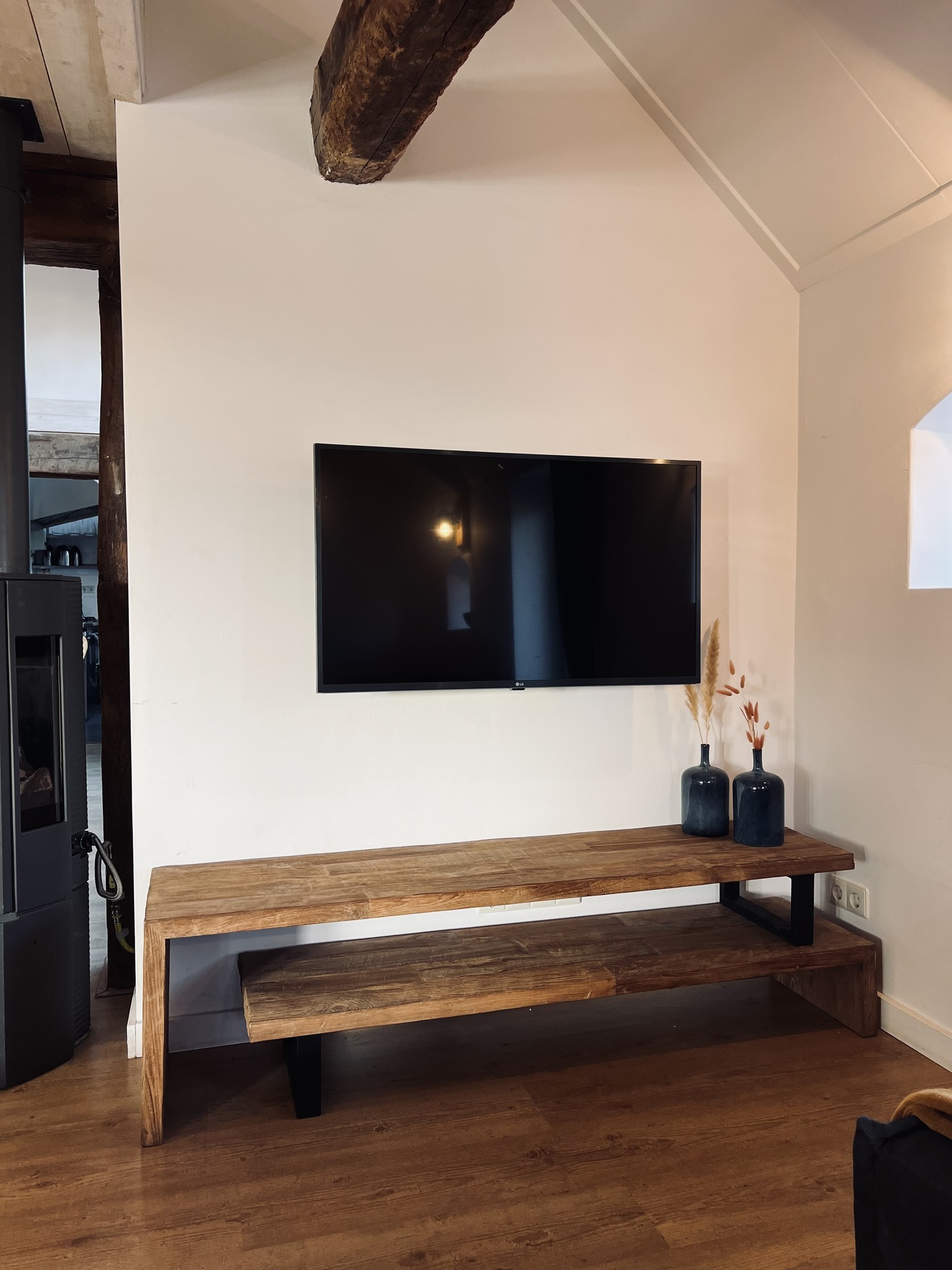 Landelijk tv-dressoir Chunky is stoer, robuust en afgewerkt met prachtige details. Het landelijke tv-meubel is gemaakt van doorleefd teakhout van 5 cm dik. Daarnaast is het meubel voorzien van een industrieel zwart stalen frame.
