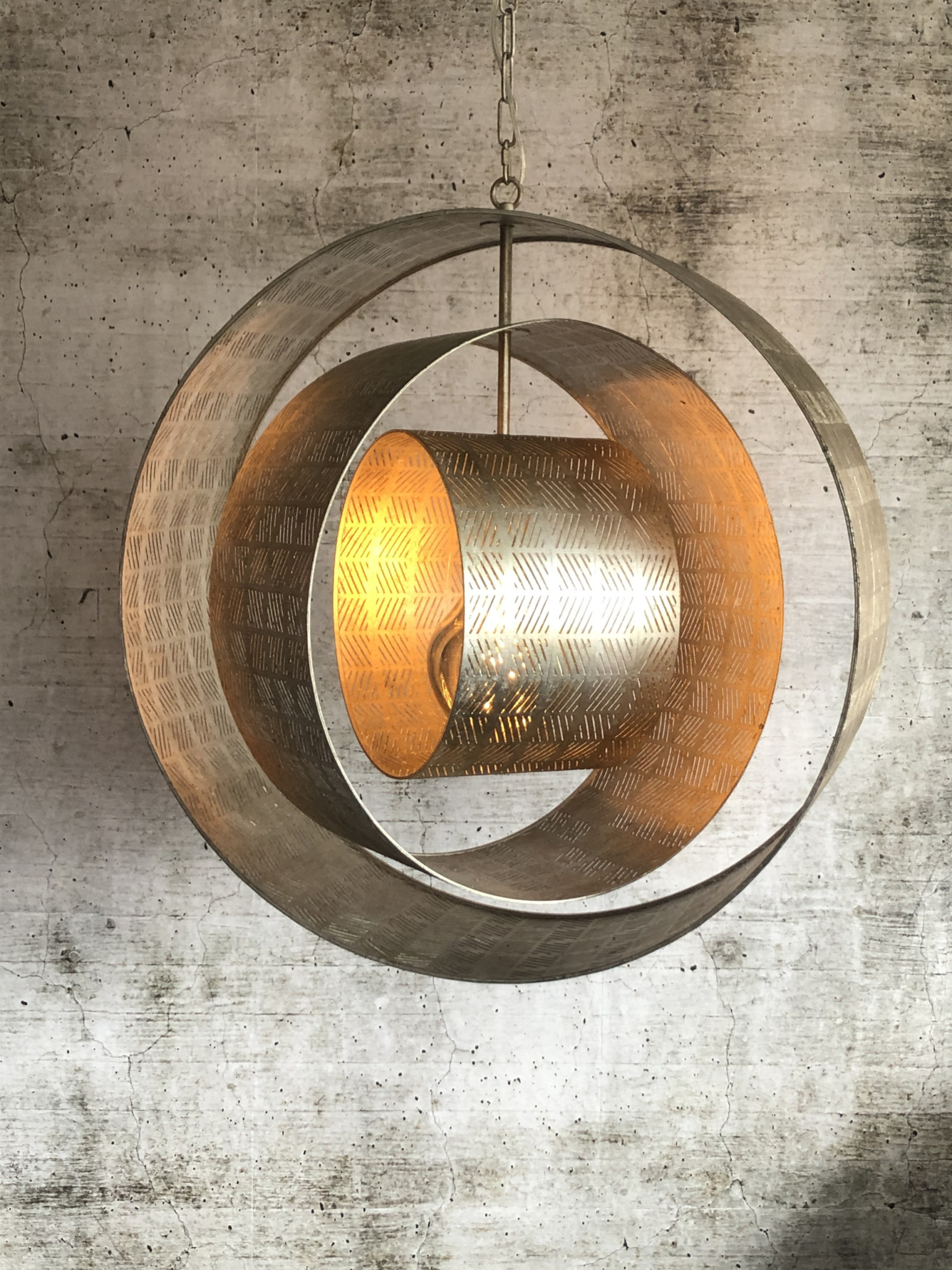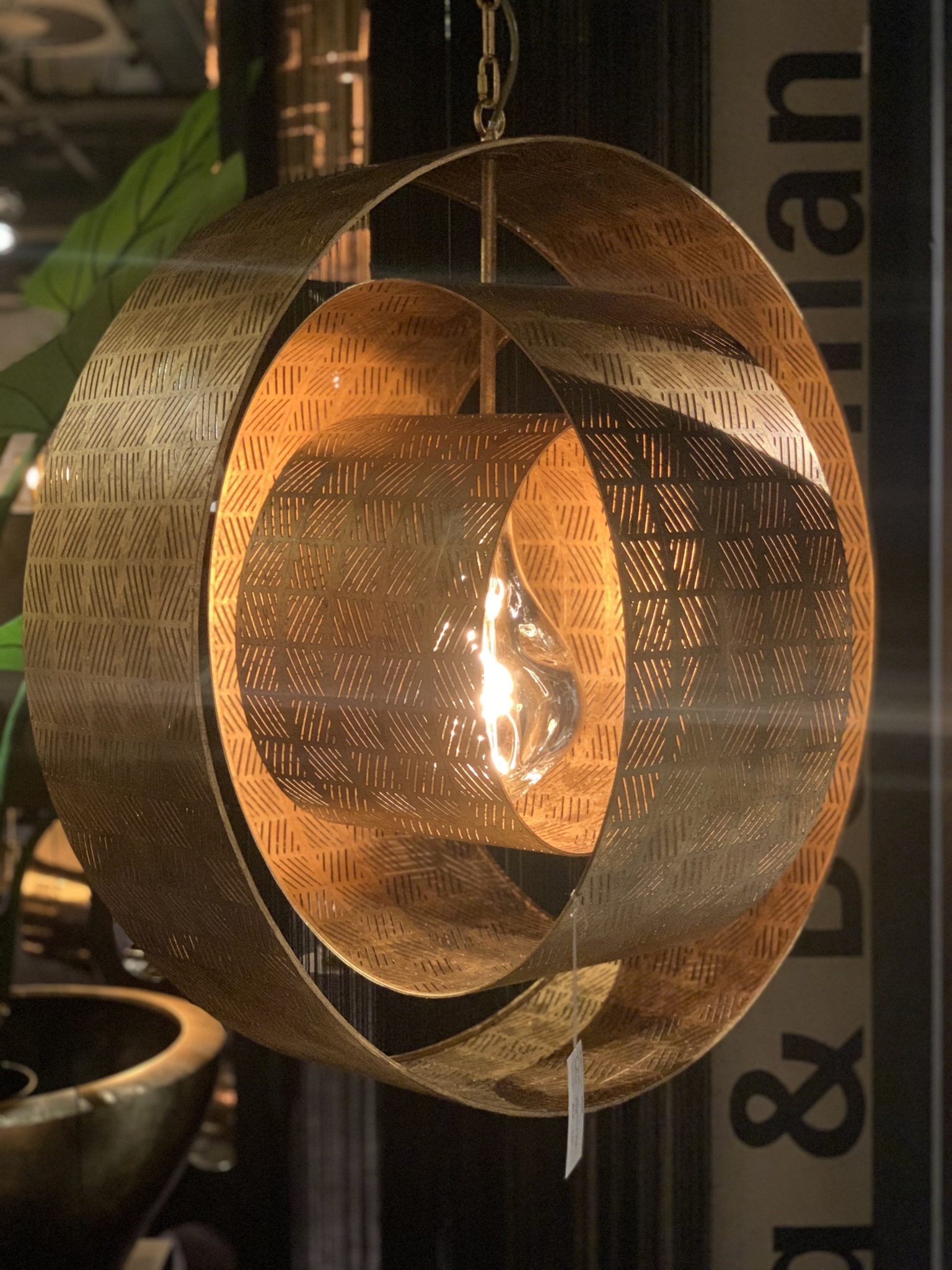 Door de open vorm blijft de lamp licht en luchtig ogen, terwijl het metalen frame zorgt voor een robuuste en luxe uitstraling. Wanneer de lamp brandt, ontstaat een mooi lichtspel dat extra sfeer toevoegt aan de ruimte.
