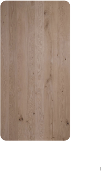Voor dit eiken tafelblad is gekozen voor een rustige eiken kwaliteit met een gelijkmatige kleur en een kalm houtbeeld. De natuurlijke nerftekening blijft zichtbaar, maar zonder grote noesten of contrasten. Dit maakt het blad perfect voor interieurs waar balans, luxe en tijdloosheid centraal staan.
